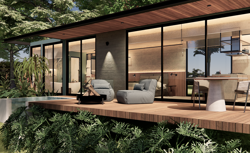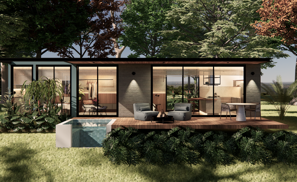 Módulos escolhidos (estrutura, cobertura, paredes com isolamento, portas, janelas, piso e demais.)